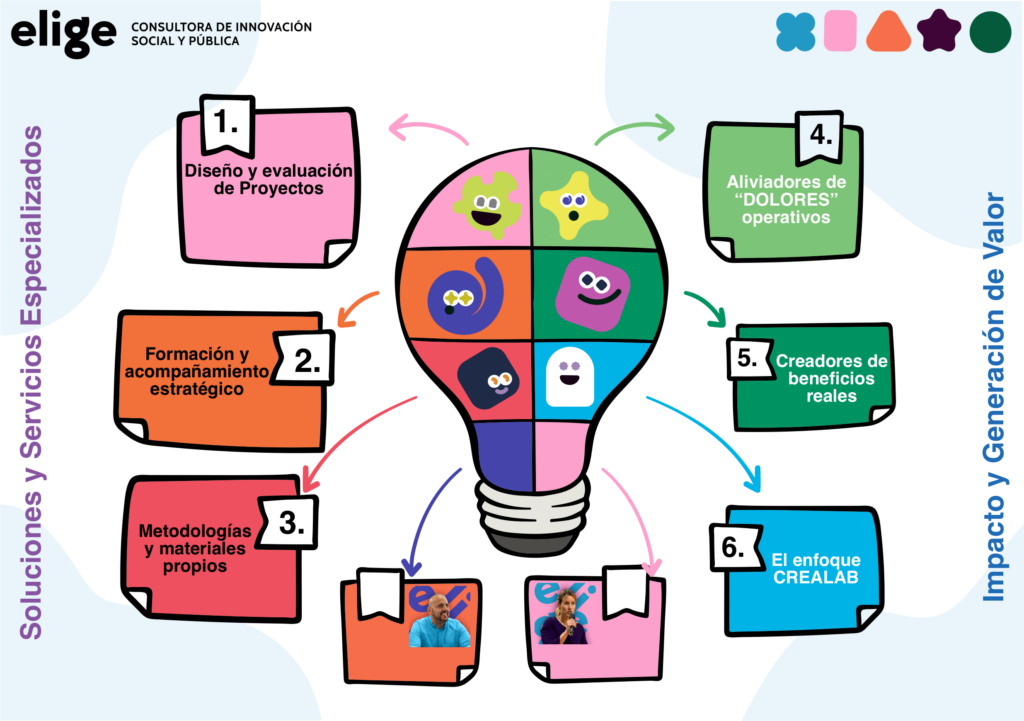 Trabajamos acompañando a administraciones públicas, entidades sociales, centros educativos y organizaciones que quieren abordar retos complejos desde una perspectiva estratégica, participativa y orientada a impacto. Nuestro trabajo combina análisis, diseño, experimentación y evaluación para convertir las ideas en proyectos viables y sostenibles.